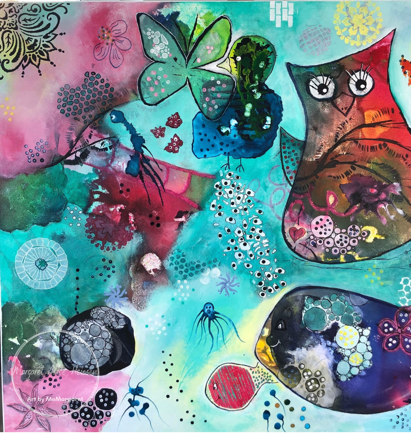Forklaring: Akrylink og Drodling/tegning akryltusj og akrylmaling