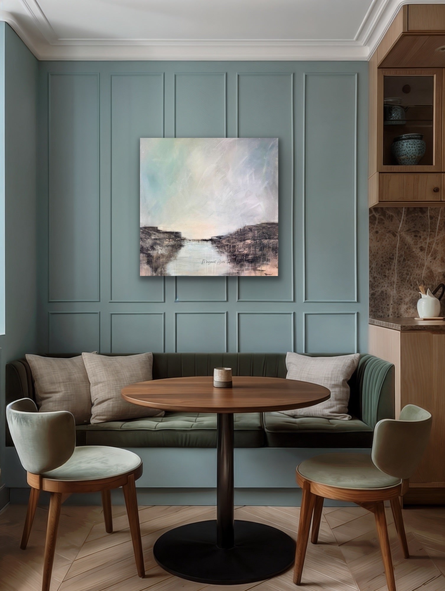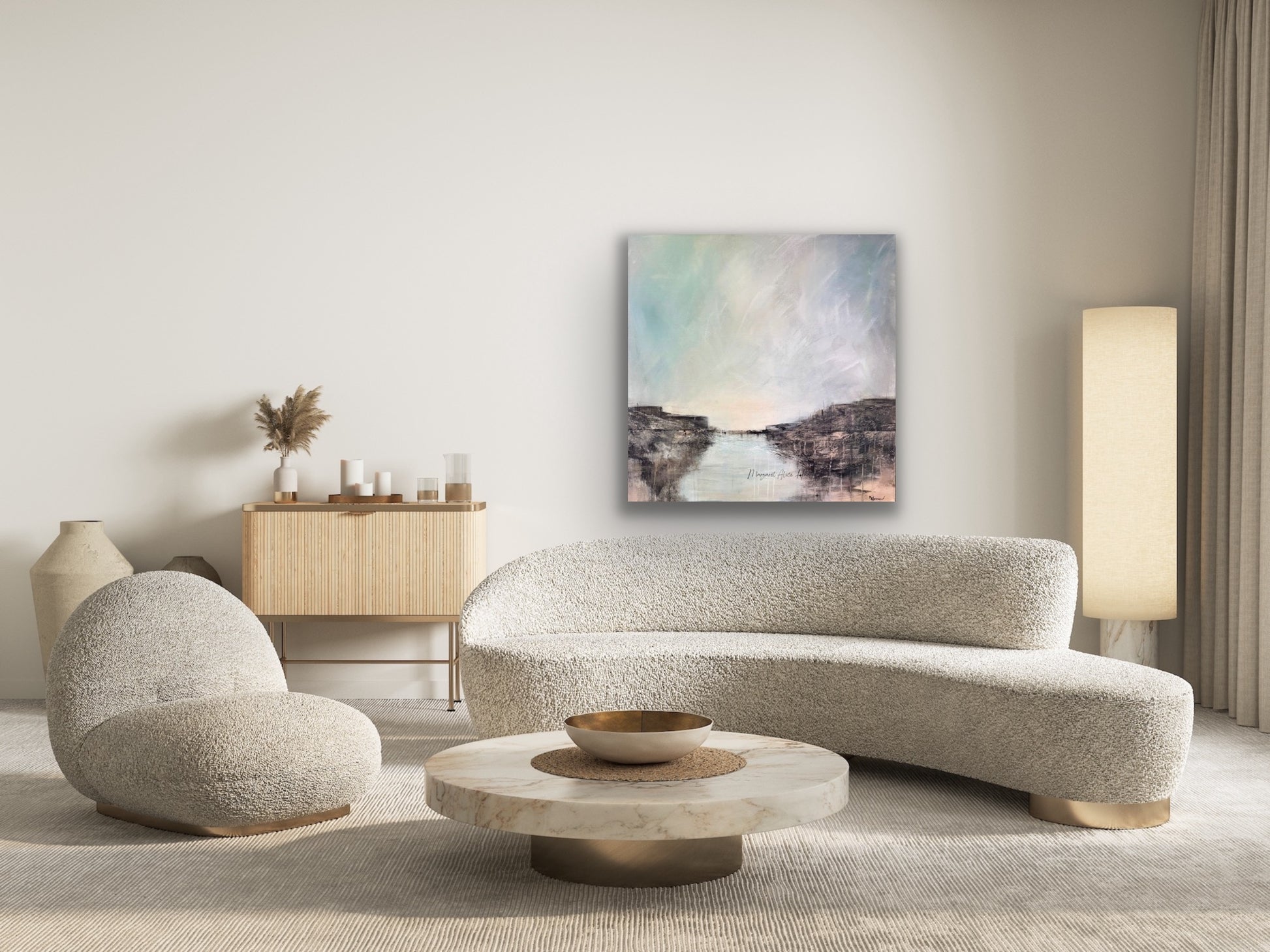 Beskrivelse: Akrylmaleri med strukturer på bomullslerret