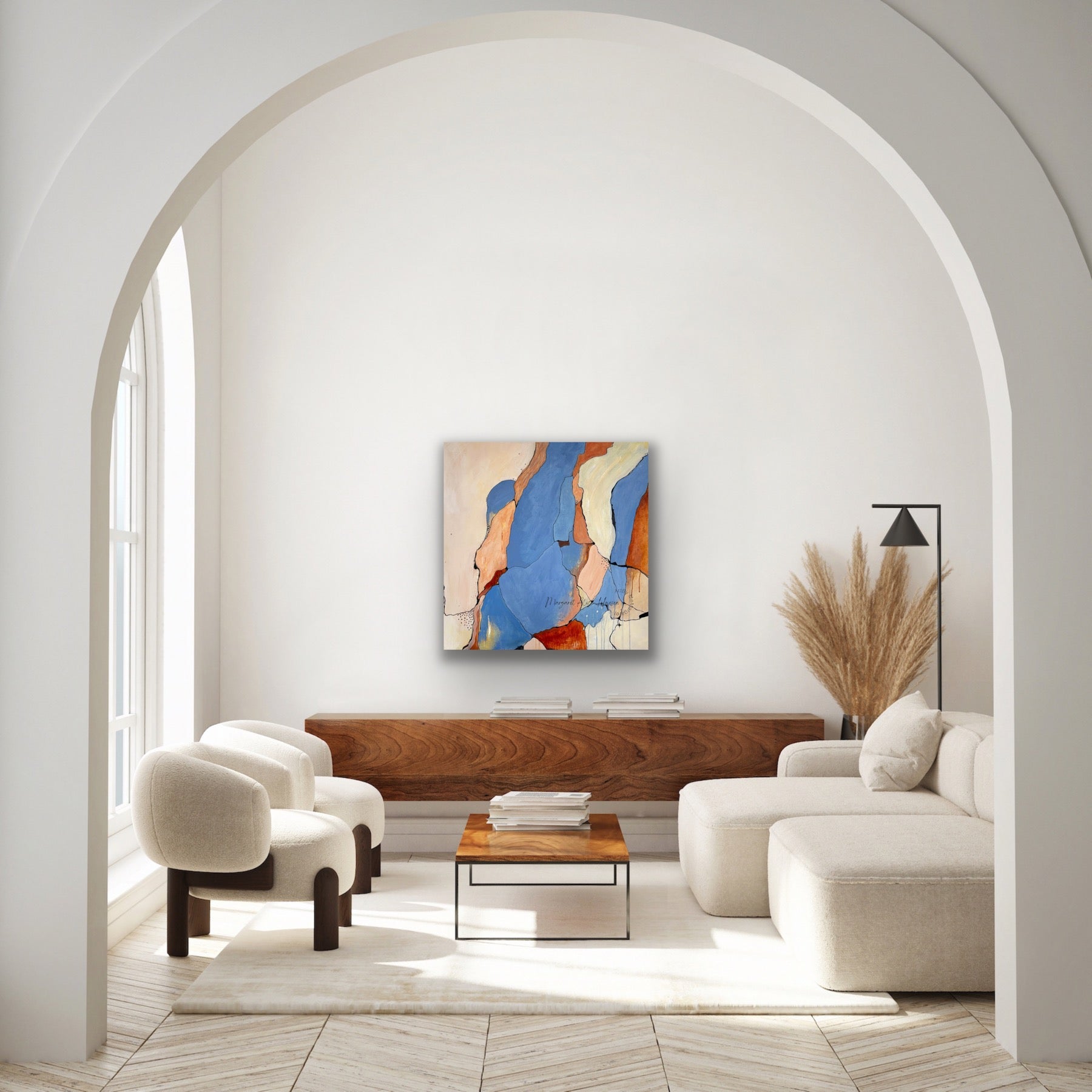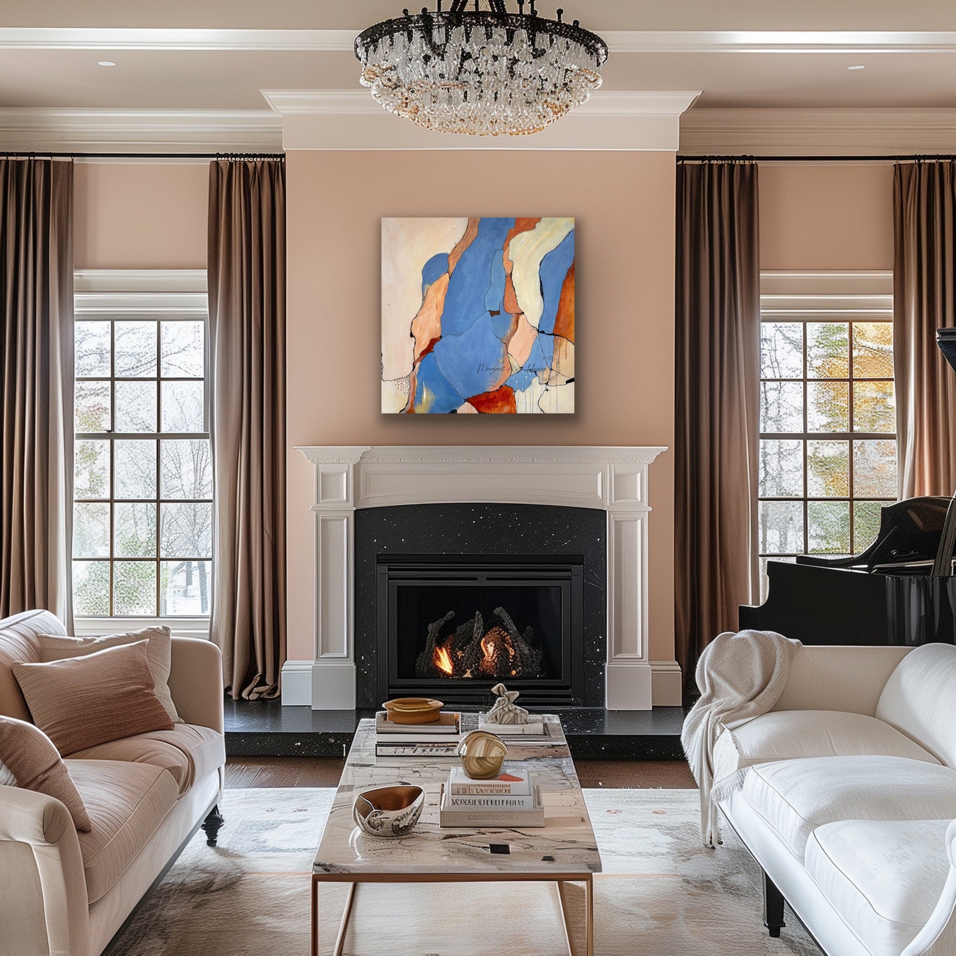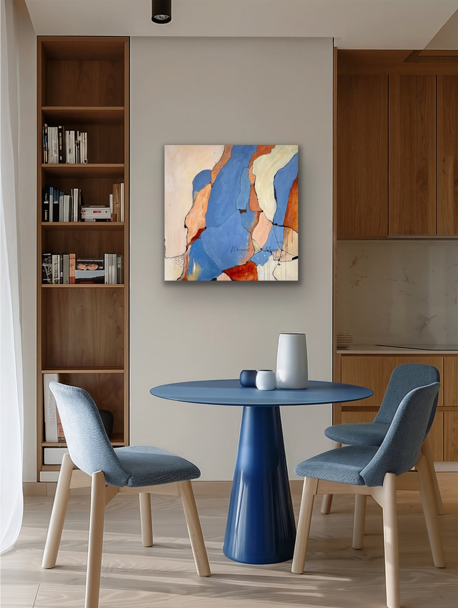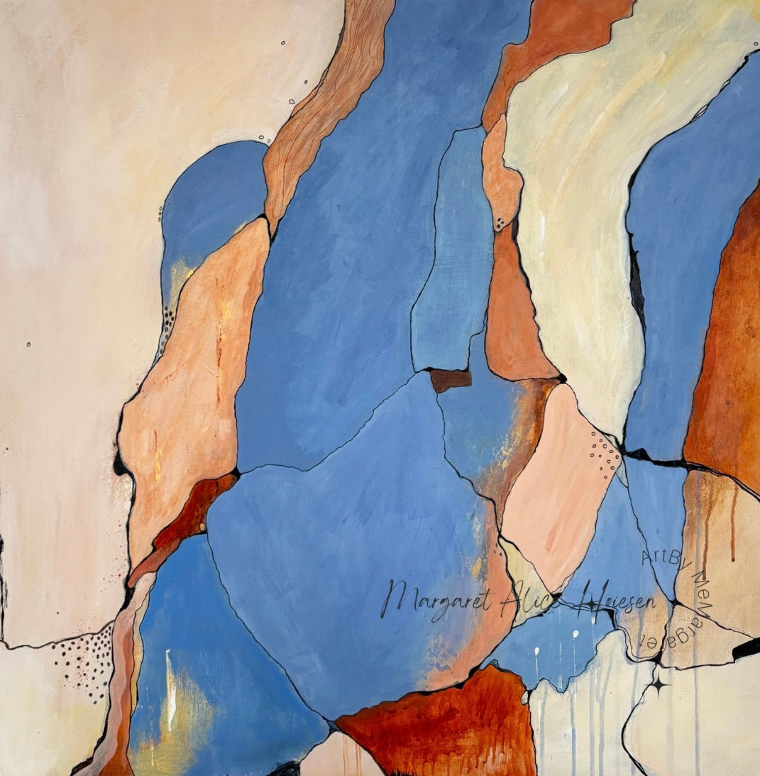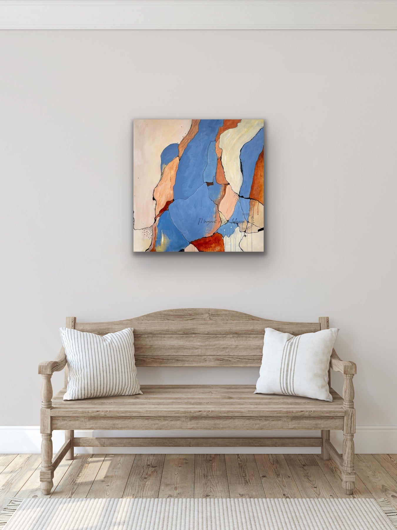 Beskrivelse: Akrylmaleri, med harmoniske farger. Markeringer.